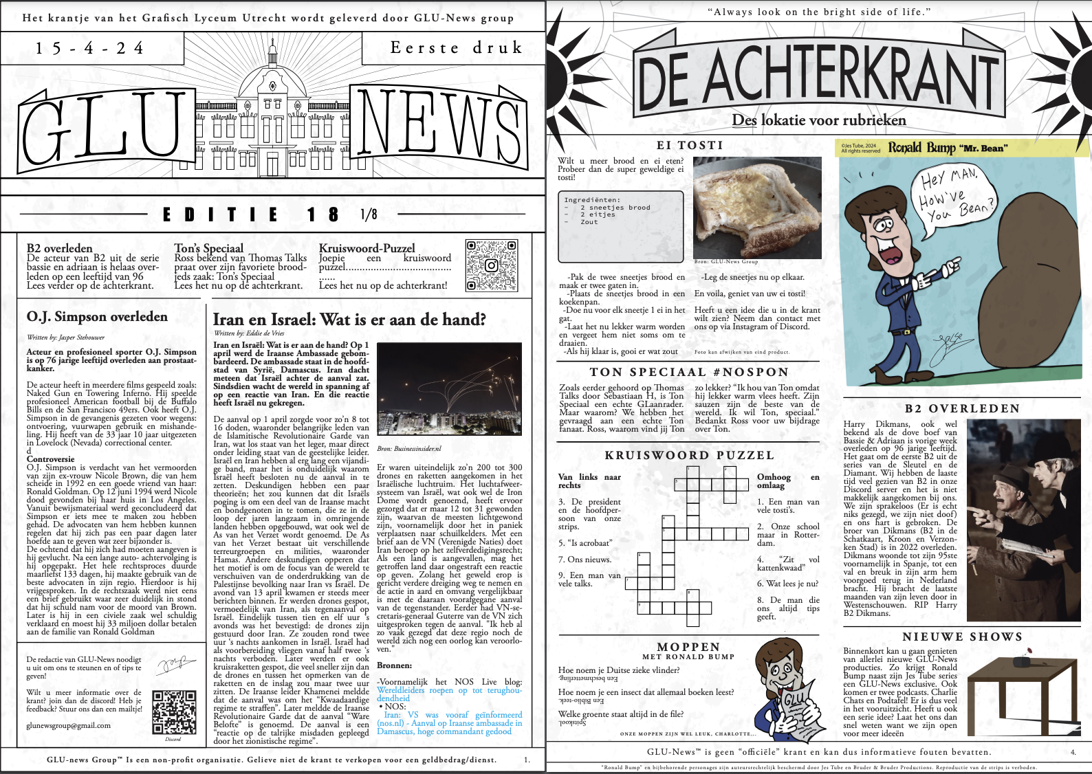 Kijk dit is een GLU-News productie die in een "mockumentary" stijl de geschiedenis van GLU-News vertelt. De docu hebben wij midden 2024 in premiere gebracht. De premiere bevond zich in de collegezaal van het Grafisch Lyceum Utrecht.